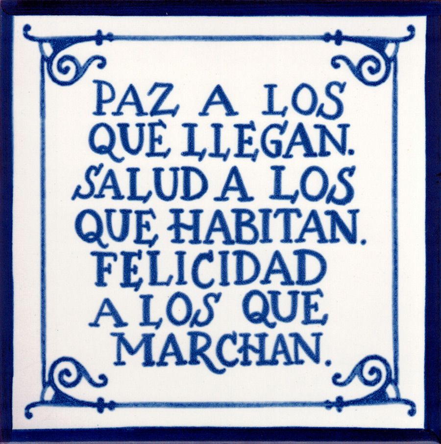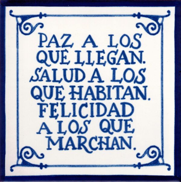 «Paz a los que llegan. Salud a los que habitan. Felicidad a los que marchan «.