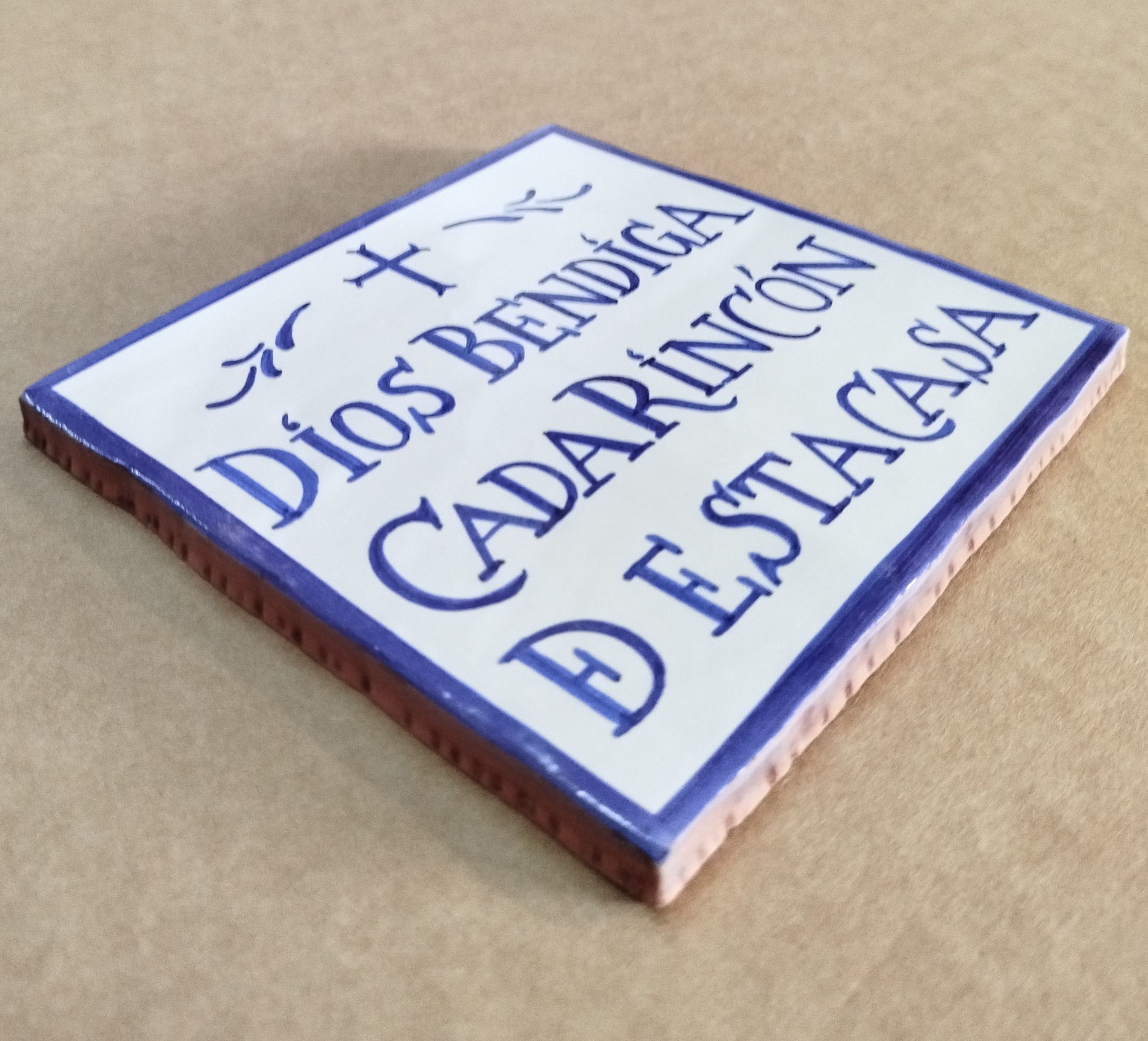 Precioso azulejo decorativo con leyenda de Dios bendiga cada rincón de esta casa.