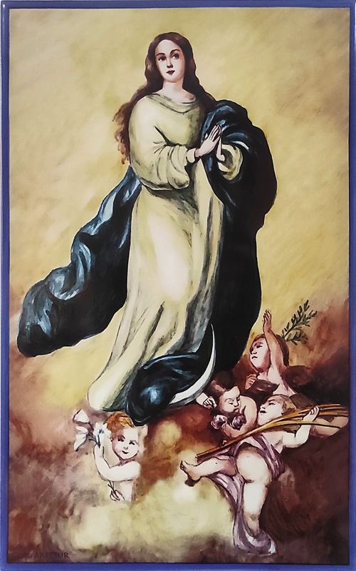 Azulejo con Inmaculada Concepción en color. Reproducción calcográfica, se puede colocar al exterior.